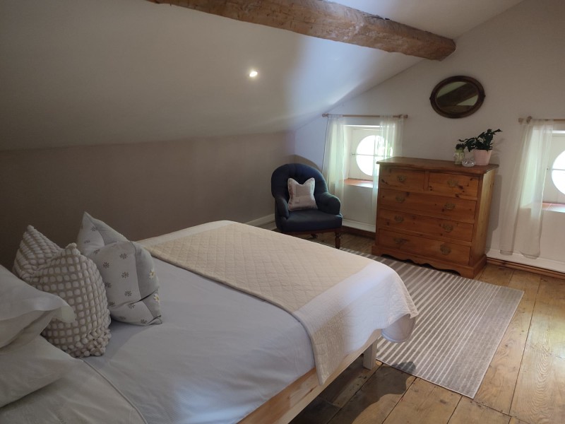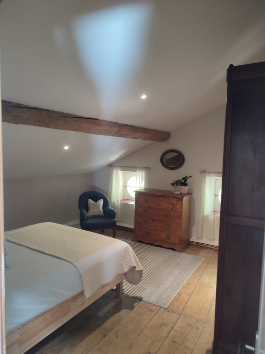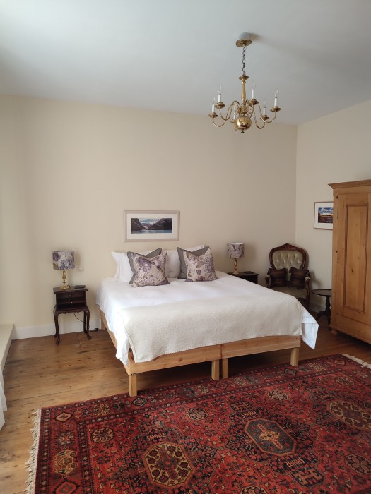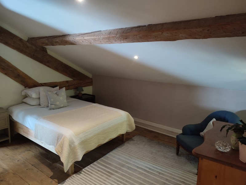 For large retreats or when renting the whole house the top floor is made available, enabling the house to sleep 15 people in total . On the top floor you can find one large double bedroom with an ensuite shower, as well as a large twin bedded room and a double bedroom with a shared family shower. The top floor is spacious with its own living room area.